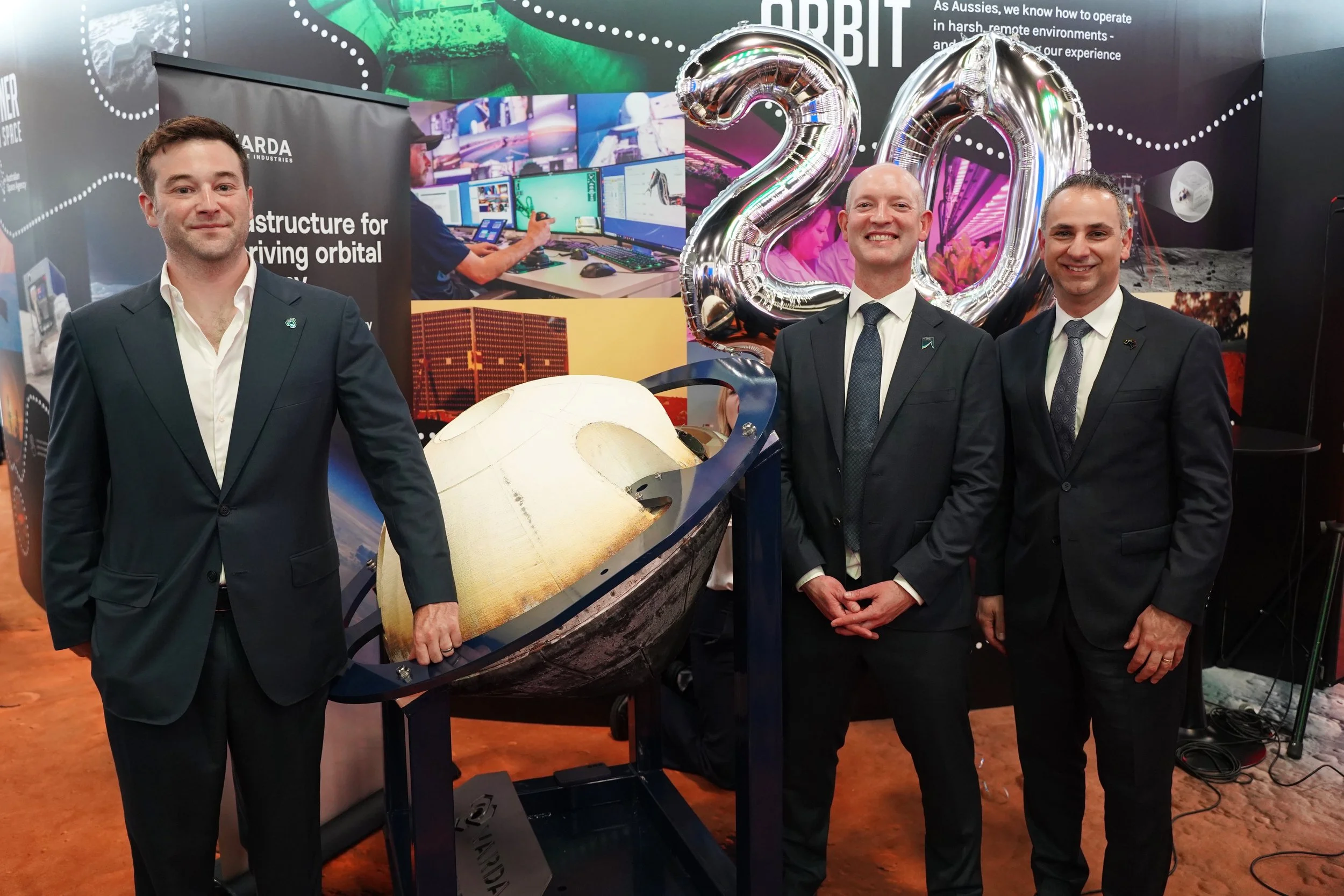 MAGE: Varda Chief of Revenue Eric Lasker with Southern Launch CEO Lloyd Damp and Head of the Australian Space Agency Enrico Palermo